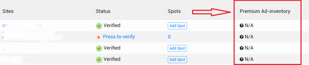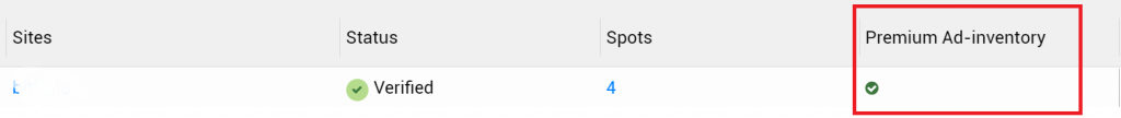 In Adlane we allow you to activate a premium ad invetory for sites that meet certain requirements. You can view your current status on the Sites page in the “Premium Ad-inventory” column