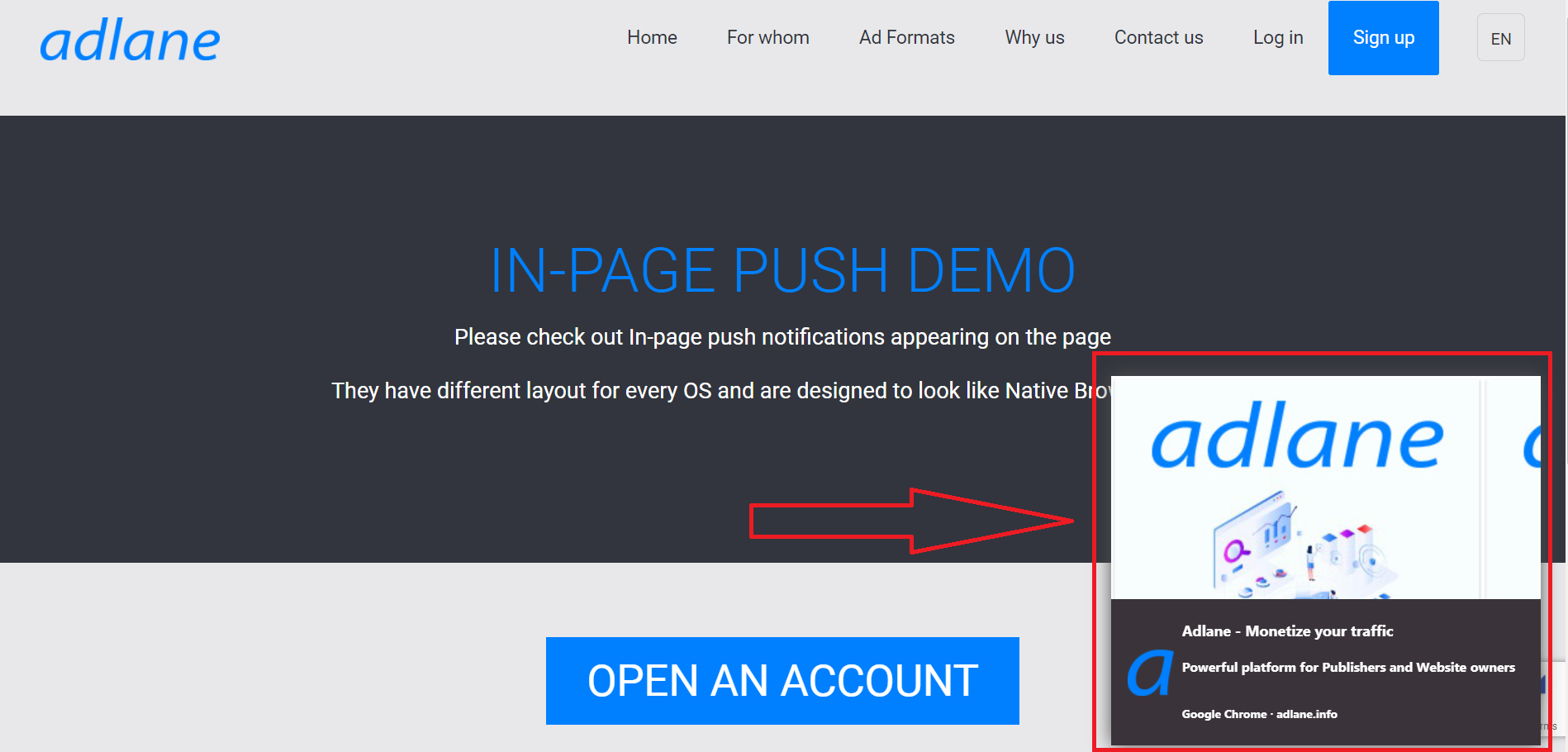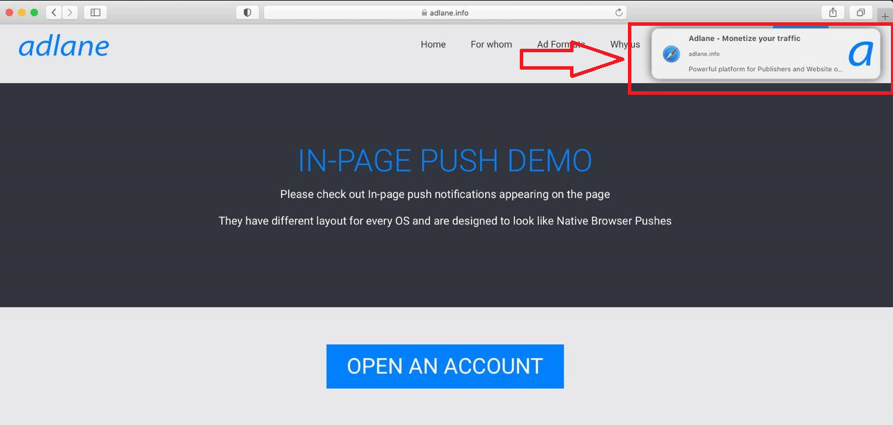 While the Google with each Google Chrome update makes the policy for browser web pushes more strict and aggressive, we decided to provide a new monetization method: In-page Push.
