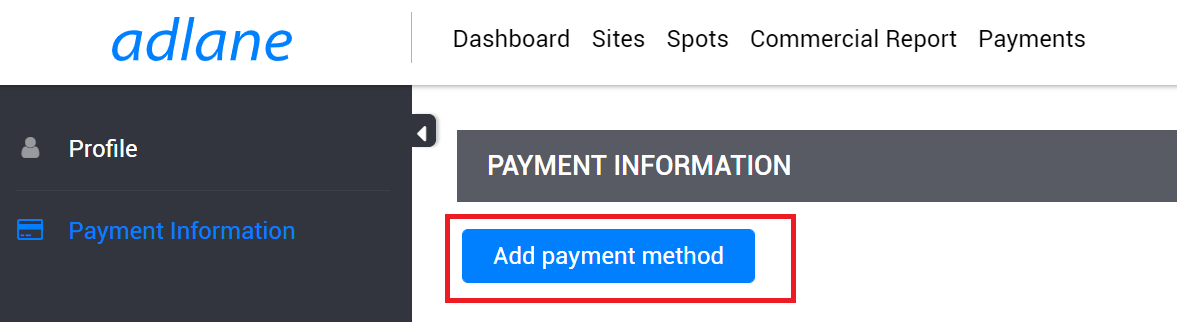 1. Перейдите на страницу Платежная информация в ваших настройках профиля и нажмите кнопку добавить платежный метод.
