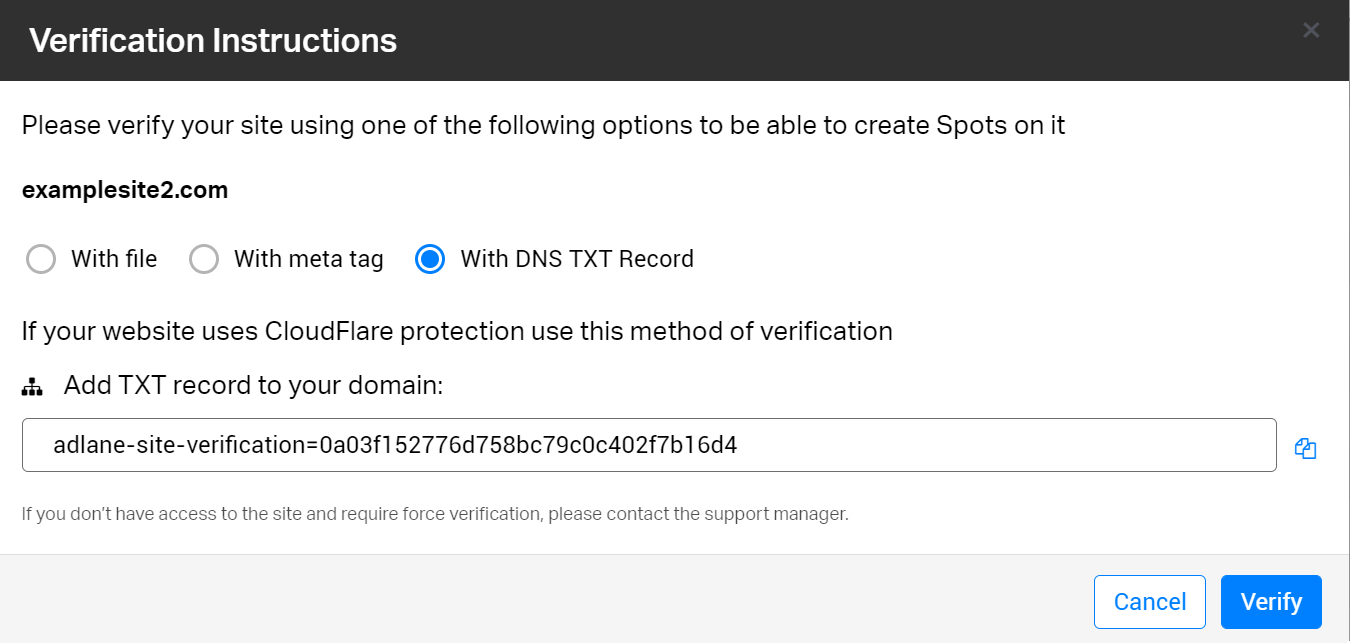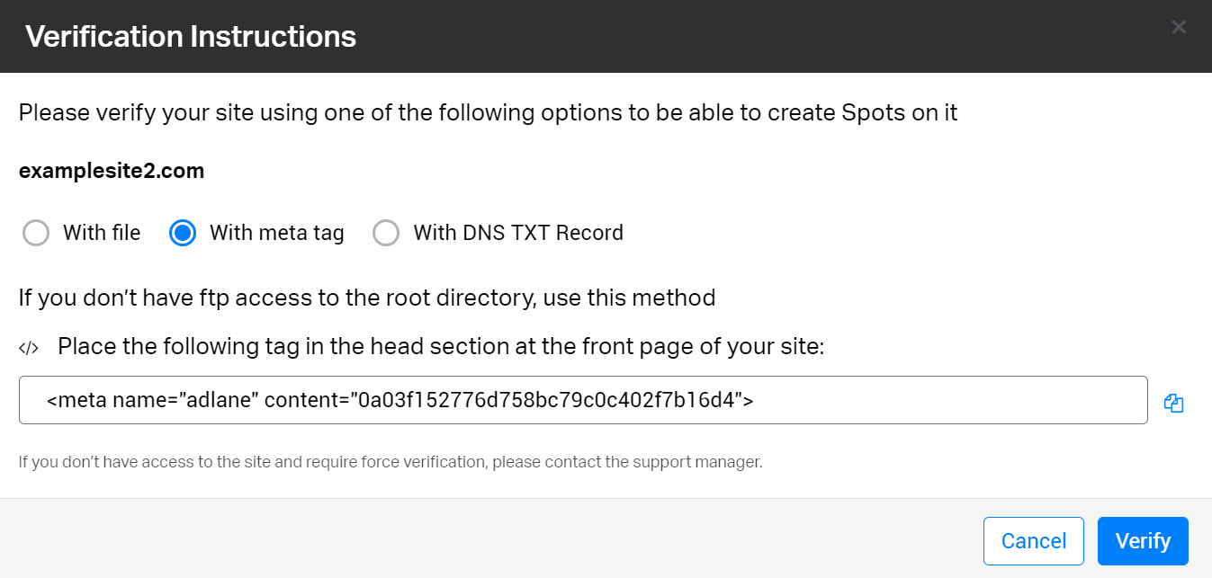 Если вы хотите в полной мере использовать Adlane, вам необходимо подтвердить свой сайт. Это руководство поможет вам в этом.Вам следует выполнить 4 простых шага: 1. Перейдите на страницу Сайты 2. Кликните на статус «Нажмите для верификации»