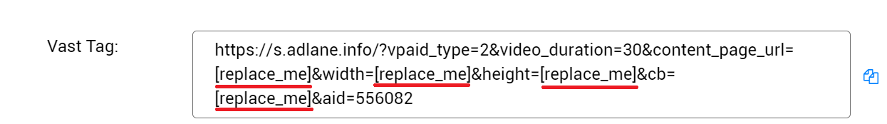 Все другие настройки вы должны выполнить согласно инструкциям своего видеоплеера.Поместите тег Vast, который появится после создания Video спота в вашем проигрывателе, и вручную измените макросы [replace_me] в соответствии с инструкциями плеера.Реклама будет отображаться как Out-Stream или In-Stream в соответствии с настройками вашего видеоплеера.